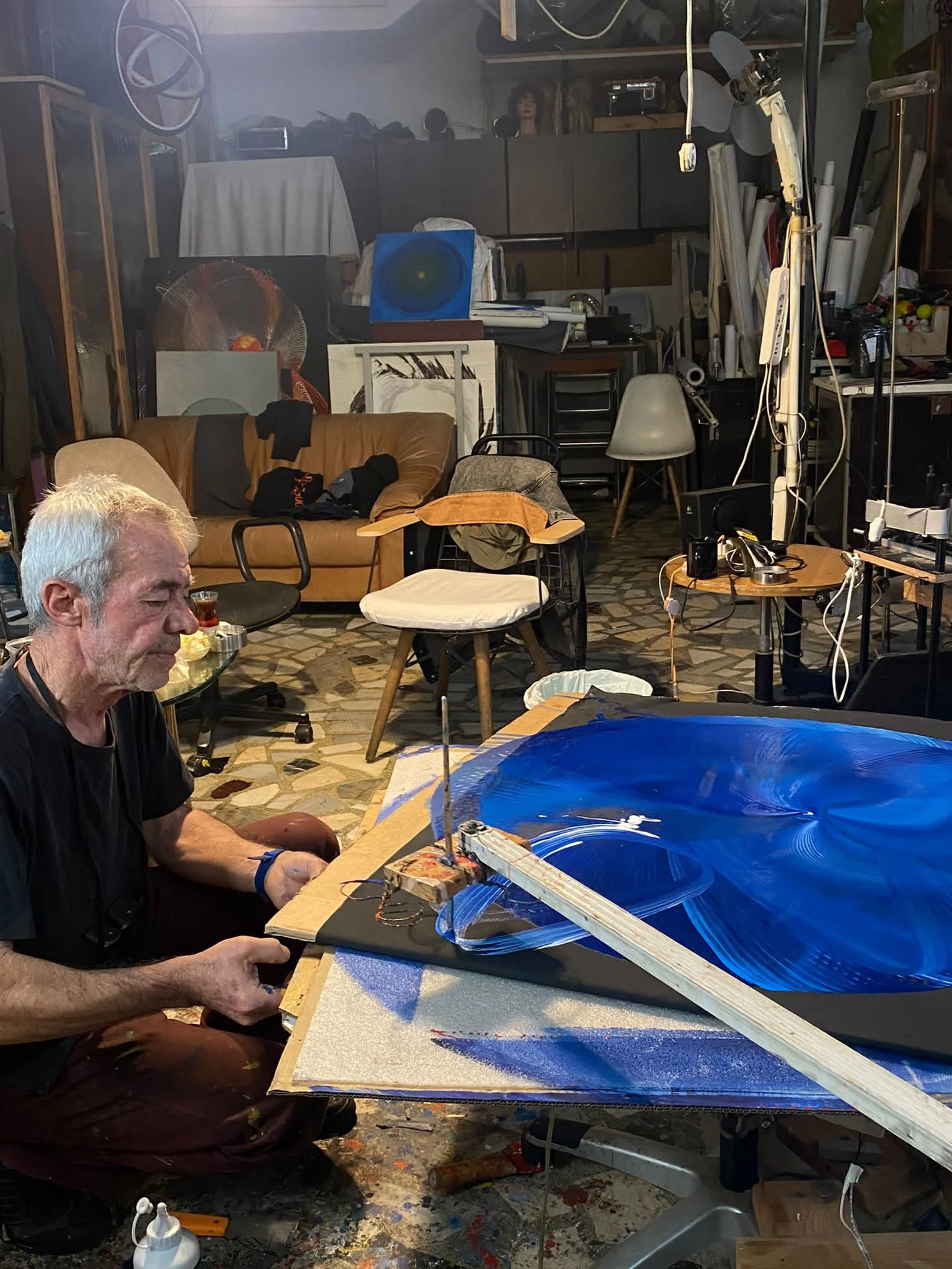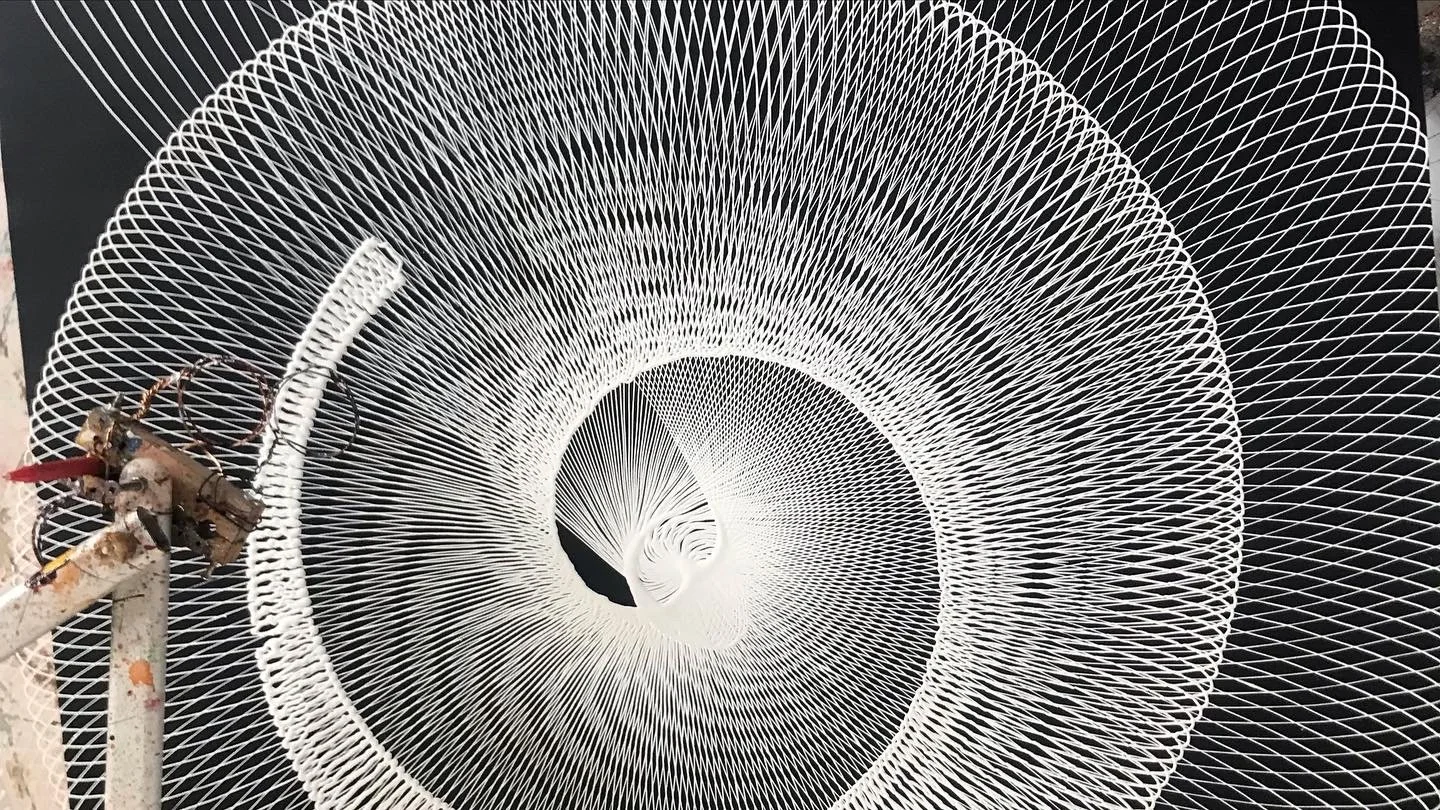 Many of his machines are whimsical and unpredictable: canvases that spin, pens that sway, paint-filled capsules that dance across surfaces. These devices create images no human hand could anticipate, embodying the coexistence of order and chaos, control and spontaneity.